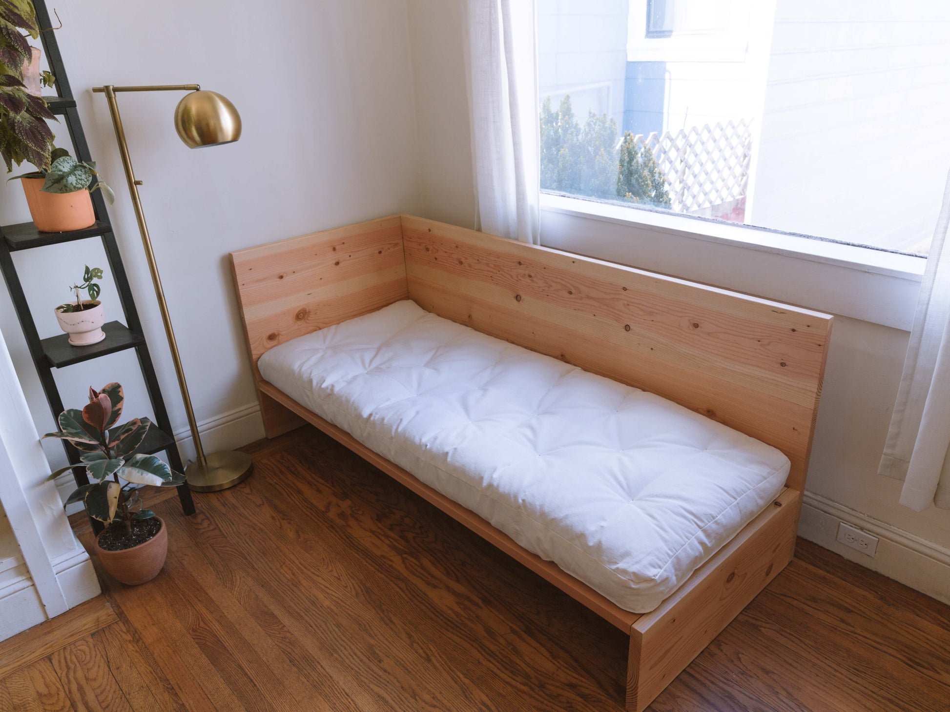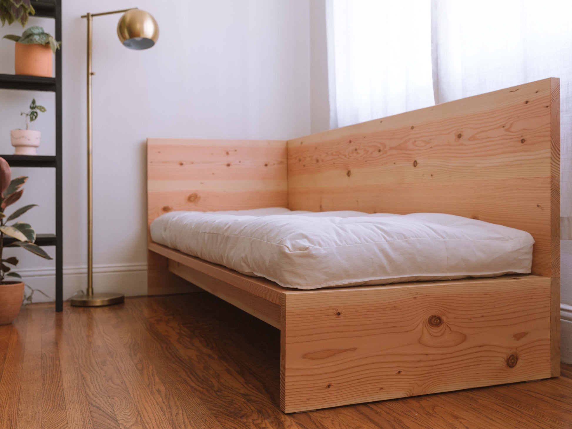 This printable PDF plan guides you through building our minimalist daybed, inspired by Donald Judd’s iconic design but with a lighter, more open feel. The step-by-step instructions offer construction and material options for both novice builders with basic tools and more experienced craftsmen with advanced equipment.