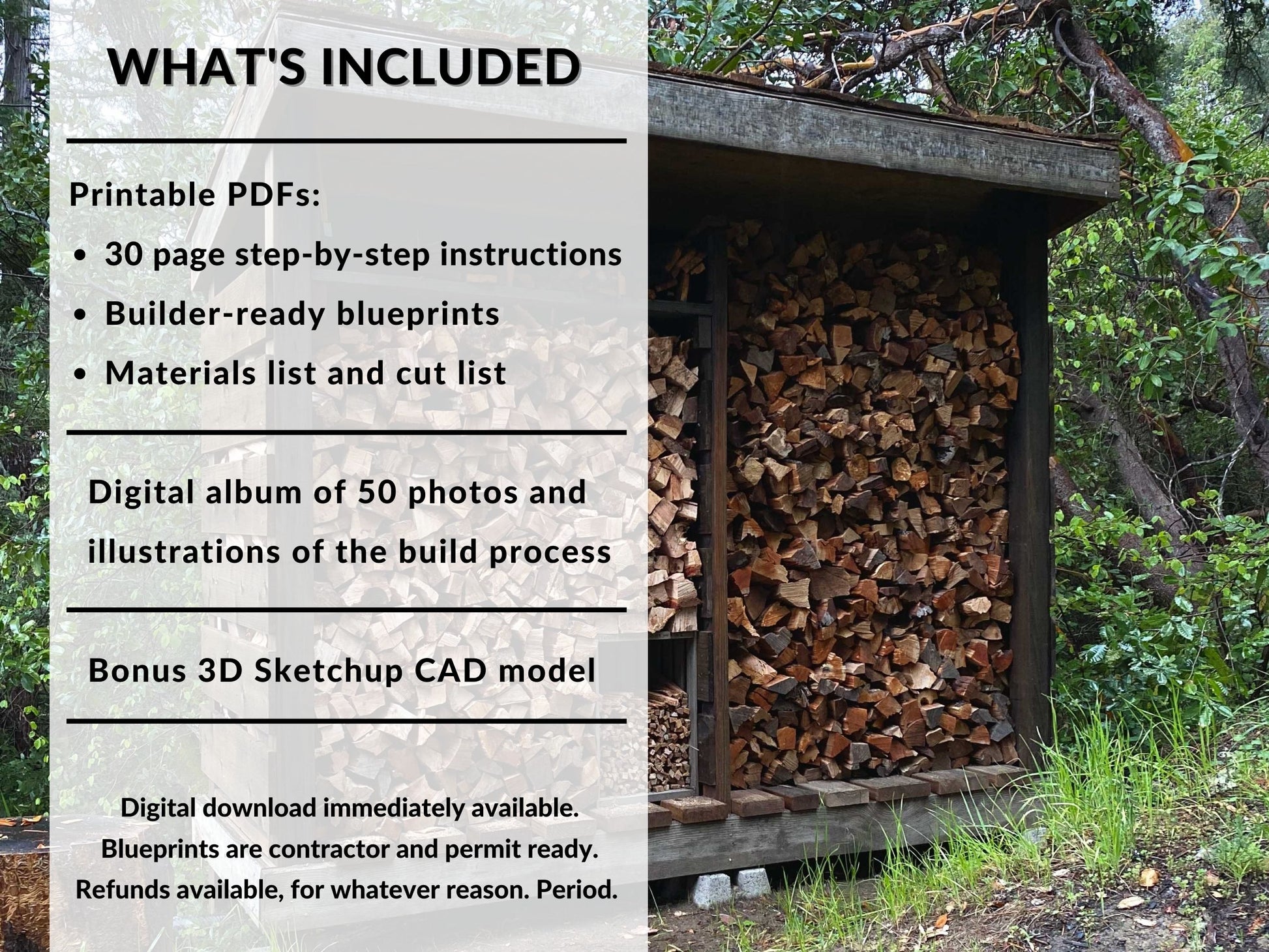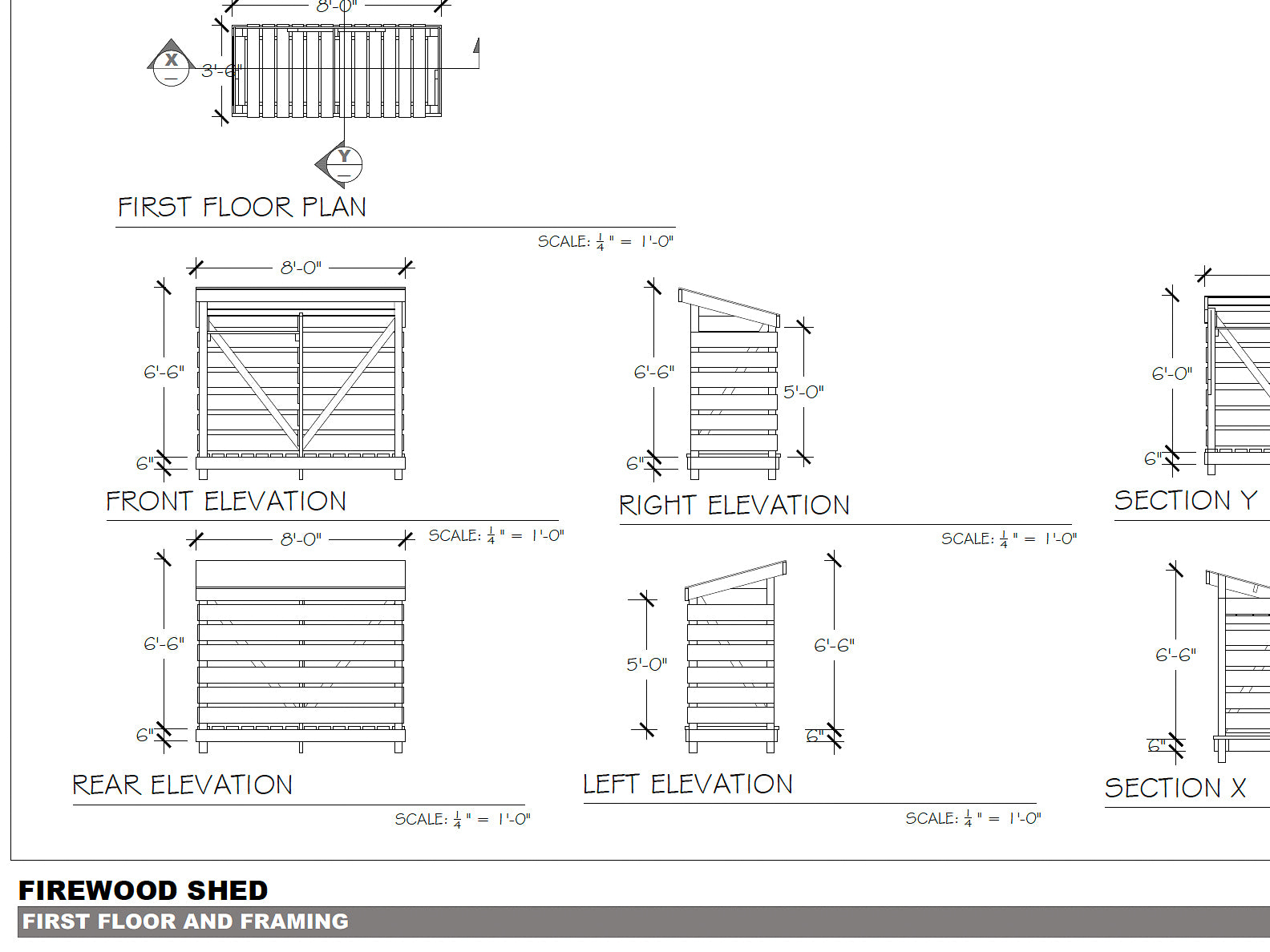 Printable PDF plans to build a versatile firewood shed. Perfect for storing firewood, garden supplies, or any other outdoor equipment, this shed holds about a cord of wood, and the plans can be adapted for larger versions.
